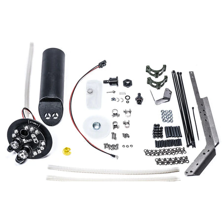 (1)These pumps do not feature an integrated check valve. Provided in this kit is a high flow check valve that secures to the outlet of these specific pumps. The 20-0980 is configured to be used with 1 aftermarket fuel pump. If 2 aftermarket pumps are required, the supplementary "dual pump add-on" (20-0937 listed below) would also be required. Choosing the best fuel pump is based on the expected engine power output, fuel type (gasoline, E85, etc.), and fuel pressure. FUEL STARVATION PROTECTION Several mechanisms work together to move fuel into the integrated collector and keep it full at all times. This ensures the pump has adequate fuel available, even during aggressive driving. The internal pump is supplied with fuel from 3 different sources: